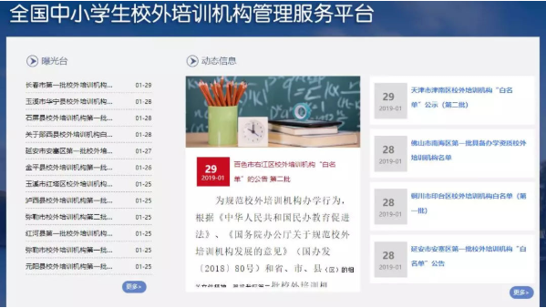 全国中小学生校外培训机构管理服务平台为家长提供选择培训机构提供依据,哪些是合法的机构,哪些是黑名单机构,一查便知。