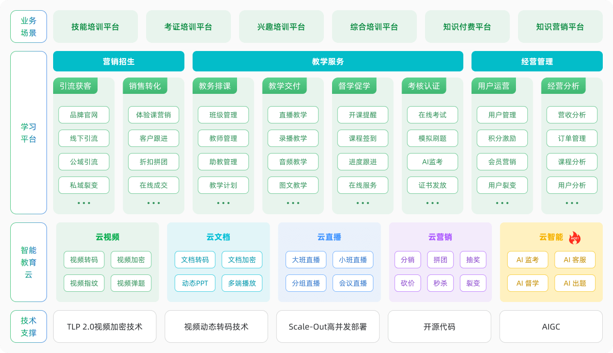 提供搭建网校的资源和系统,帮助机构快速搭建线上学习平台