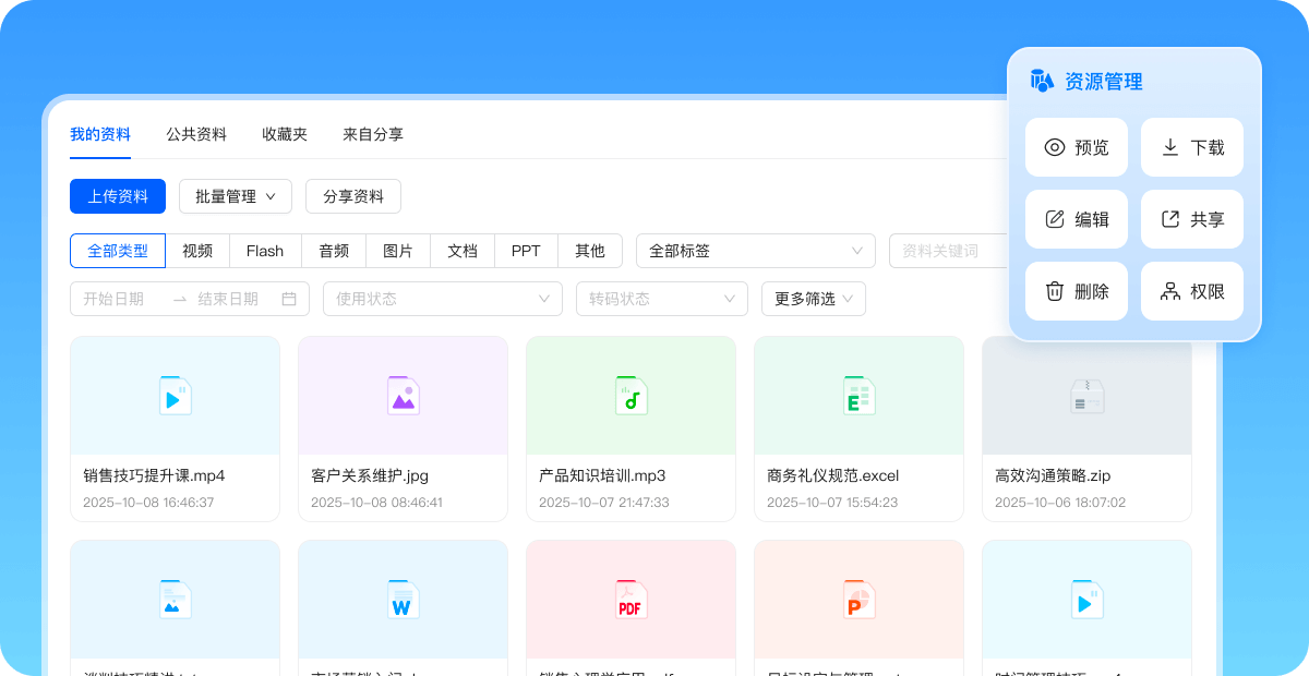 统一管理企业知识资产,精细管控权限,提升资源复用率