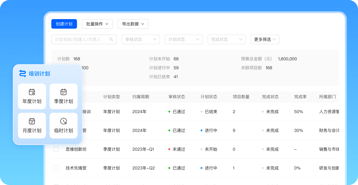 全流程在线化,培训计划执行透明化,管理效率提升100%,确保计划落地