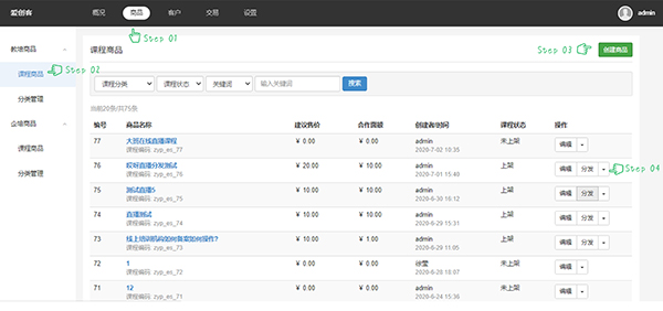 了解了以上信息之后,相信各位校长已经跃跃欲试了吧。接下来小阔将分别从供应商(S端)和渠道商(b端)的角度,为大家展示EduSoho分课的正确打开方式,教你完成一场效率空前的直播课。
