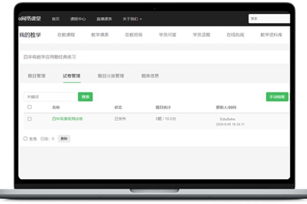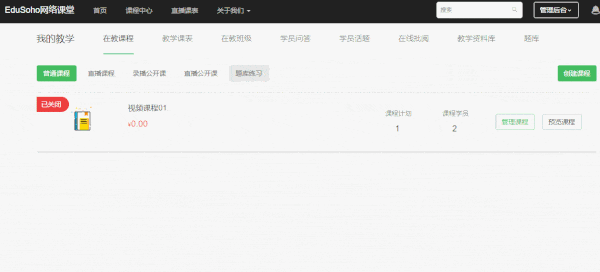 运营者们只要前往「后台-教学-课程管理」,即可对网校内所有的题库练习进行查阅了。
