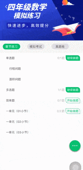 刷题可以说是考证行业的标配,通过「试卷练习」模式,机构就可以为学员提供如“期末摸底考试”、“2019真题试卷”等应试专项测评,通过体系化的刷题练习,帮助学员提升成绩。