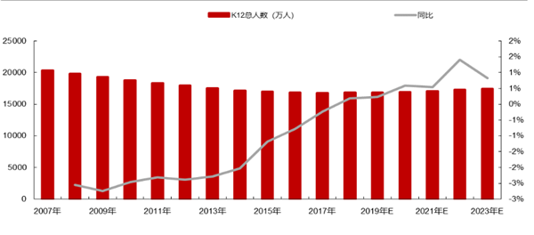 人口基数:适龄学生体量大,但增量对行业规模影响较小