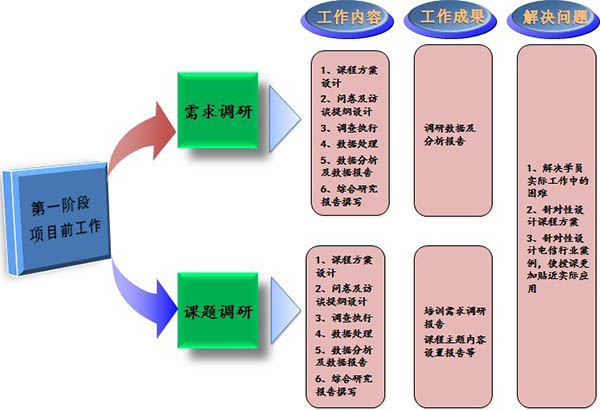 本阶段注重对客户的培训背景、培训目标、培训对象、培训期望值等进行全面调研,深入了解培训需求,为培训方案制定奠定坚实基础。培训课程需求调研思路如下: