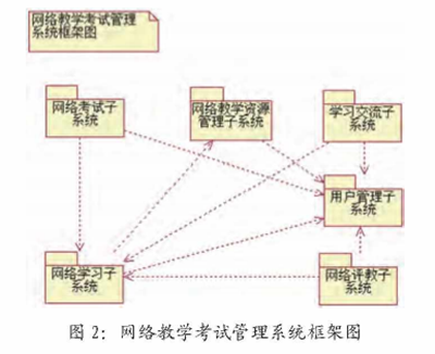 根据系统分析,高校网络教学考试管理系统旨在为实现网络教学与网络考试的科目提供系统支持,以完成网络教学与网络考试业务,通过前期对系统的调查研究分析,系统的功能主要分为六大模块,如下图所示