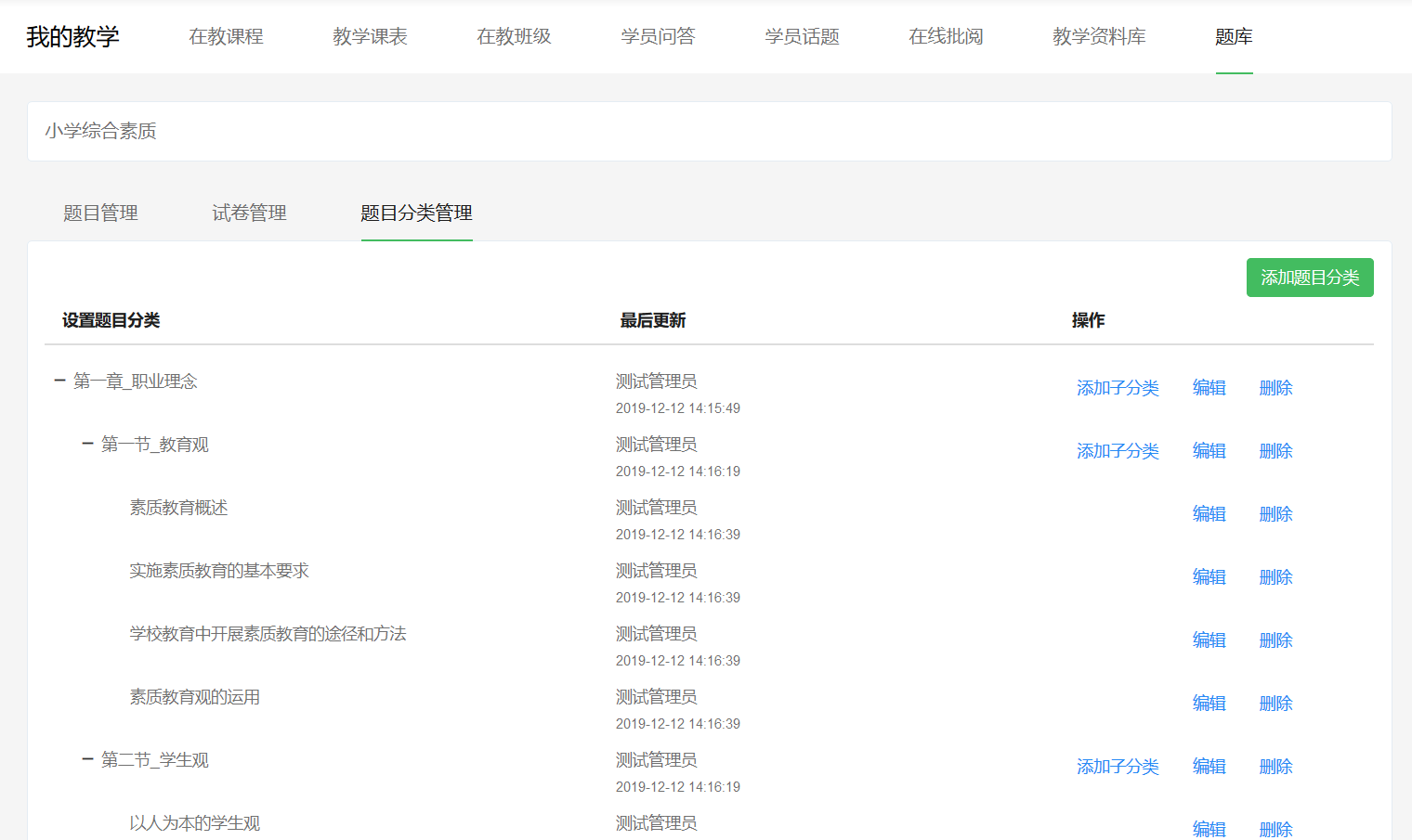 1、题库分类管理