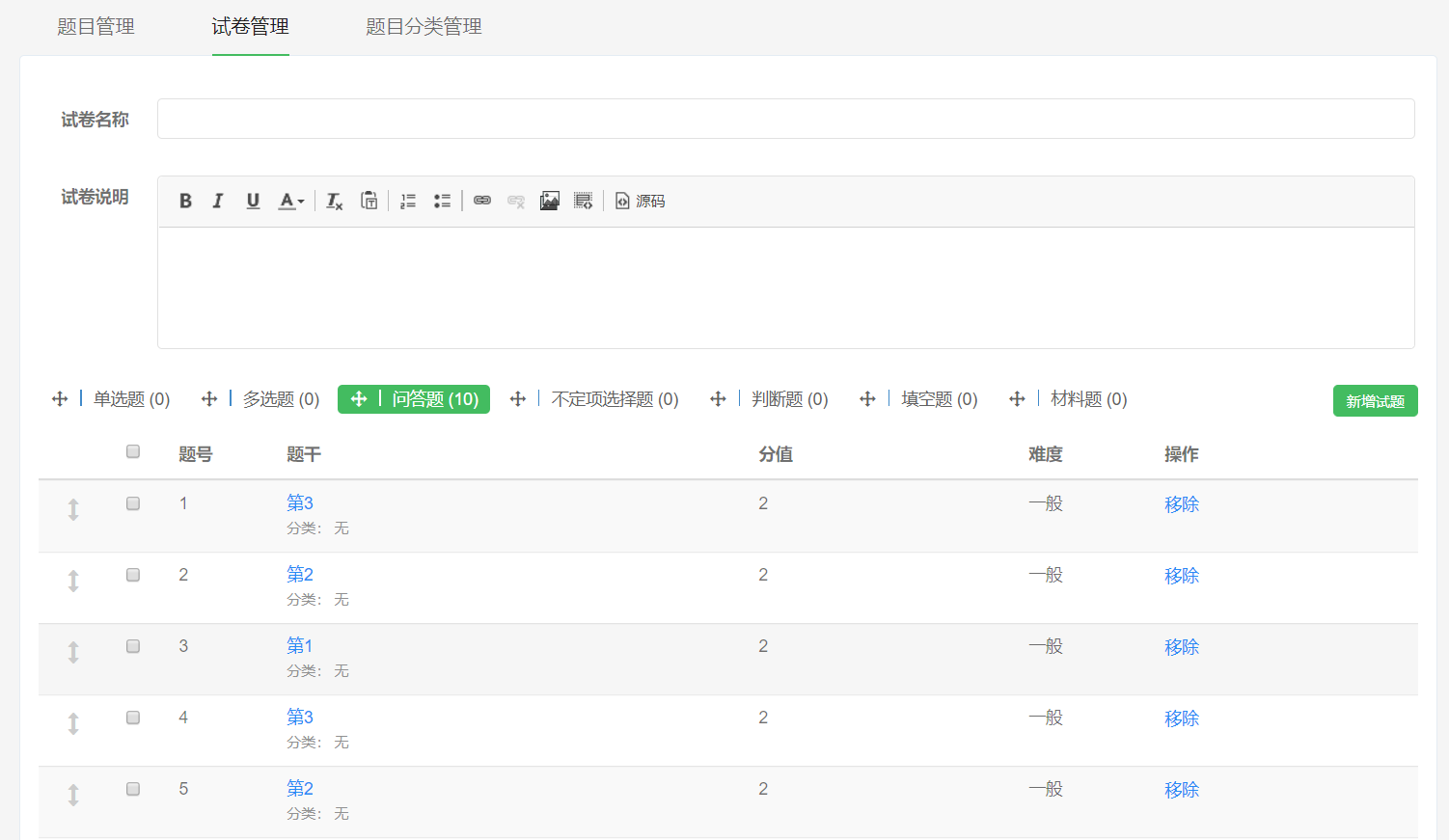 3、试卷管理