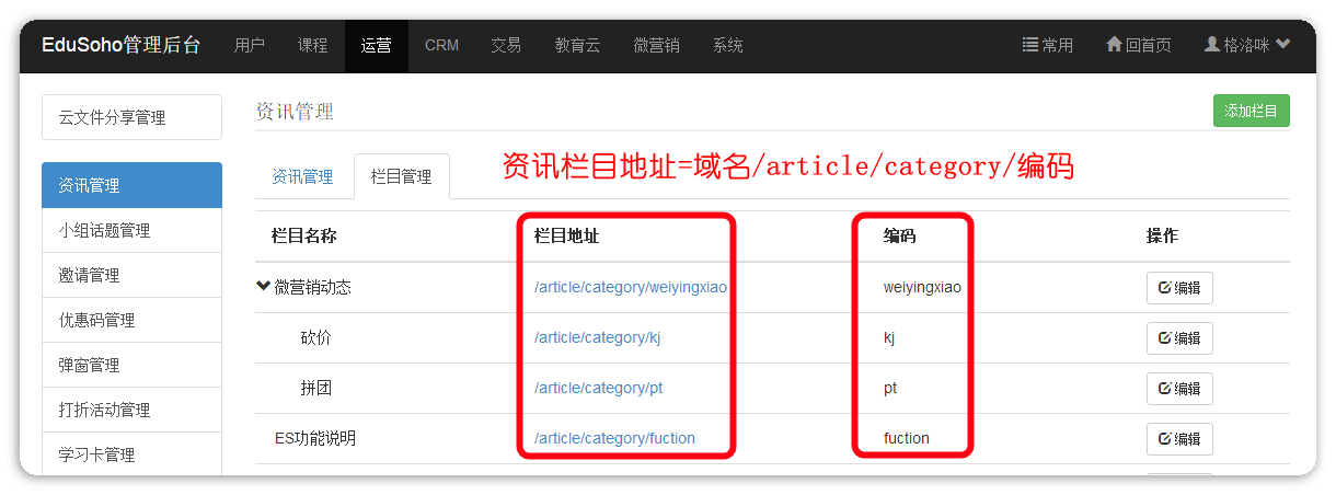 一般是将资讯某一个栏目(资讯分类)添加到顶部导航;