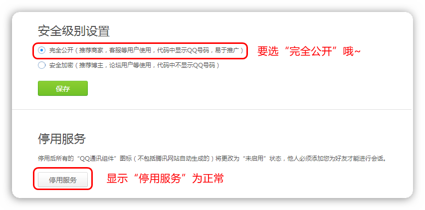 (2)安全设置(设置自动回复语后将页面下拉即可看到此设置)