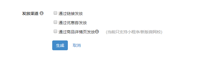 生成优惠券的时候可以选择发放方式,根据设置的发放方式有以下三种方式: