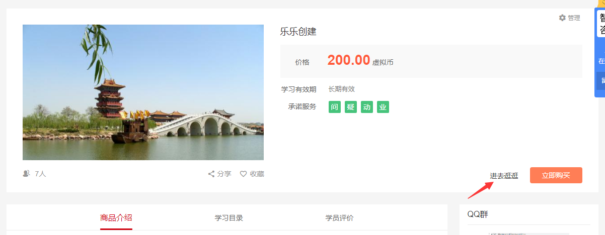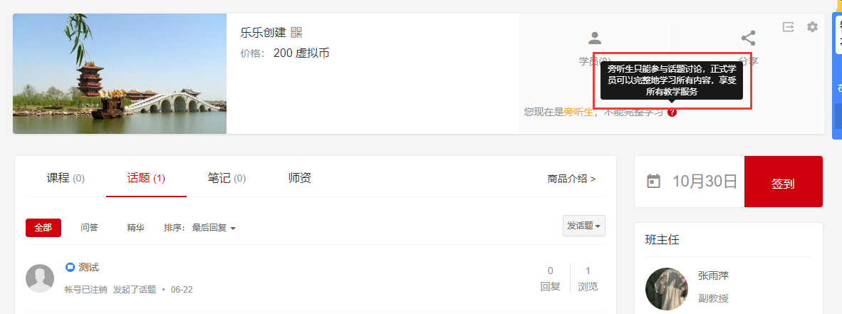 学员在班级详情页点击【进去逛逛】就会成为这门班级的旁听生;
