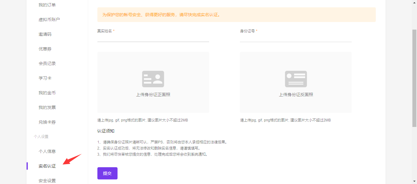 目前还没有跟实名认证绑定的功能。 后期会添加上与实名认证相关的功能,如只有通过了实名认证才可以进行学习。