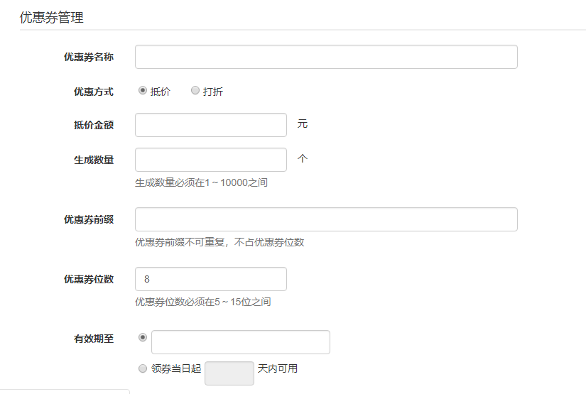 2、优惠券前缀是为了让管理员能第一眼辨认出属于哪个优惠活动,判断学员来源,以及区别各个批次优惠码,不可重复;