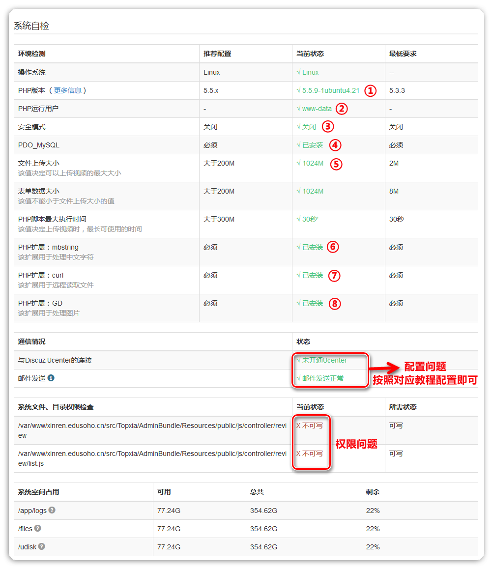 EduSoho网校系统自检中,提示“当前状态不可用”是什么原因?
