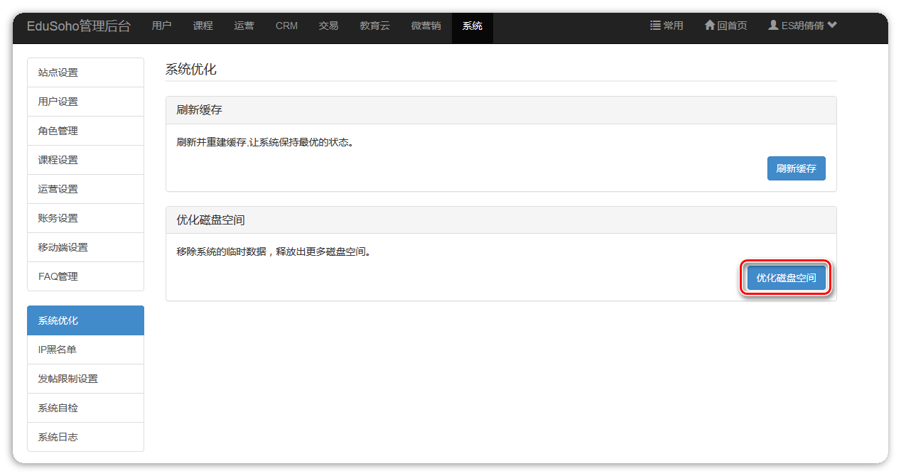 路径:【管理后台】-【系统】-【系统优化】-【优化磁盘空间】。