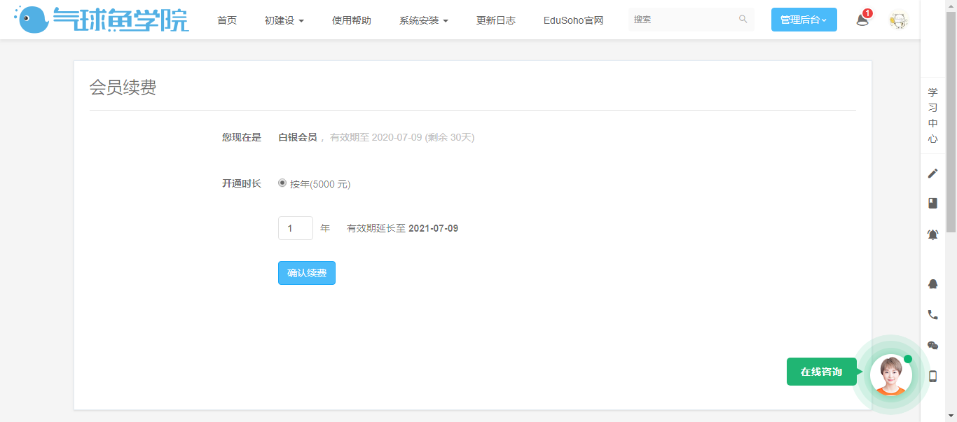 选择你要将会员延长的期限,系统自动计费,点击【确认续费】进入支付页面,支付成功后即可延长你的会员期限啦~
