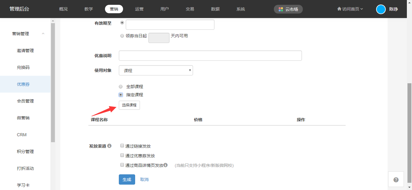 EduSoho网校系统可以指定邀请注册获得的优惠券的使用对象吗?比如优惠券只能用于购买某一个班级或课程。