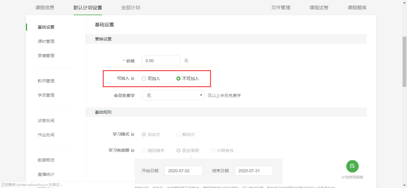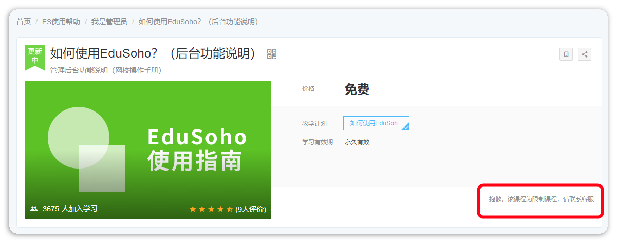 出现以上提示的原因是该课程的【营销设置】中关闭了购买,请到课程管理页中修改设置。