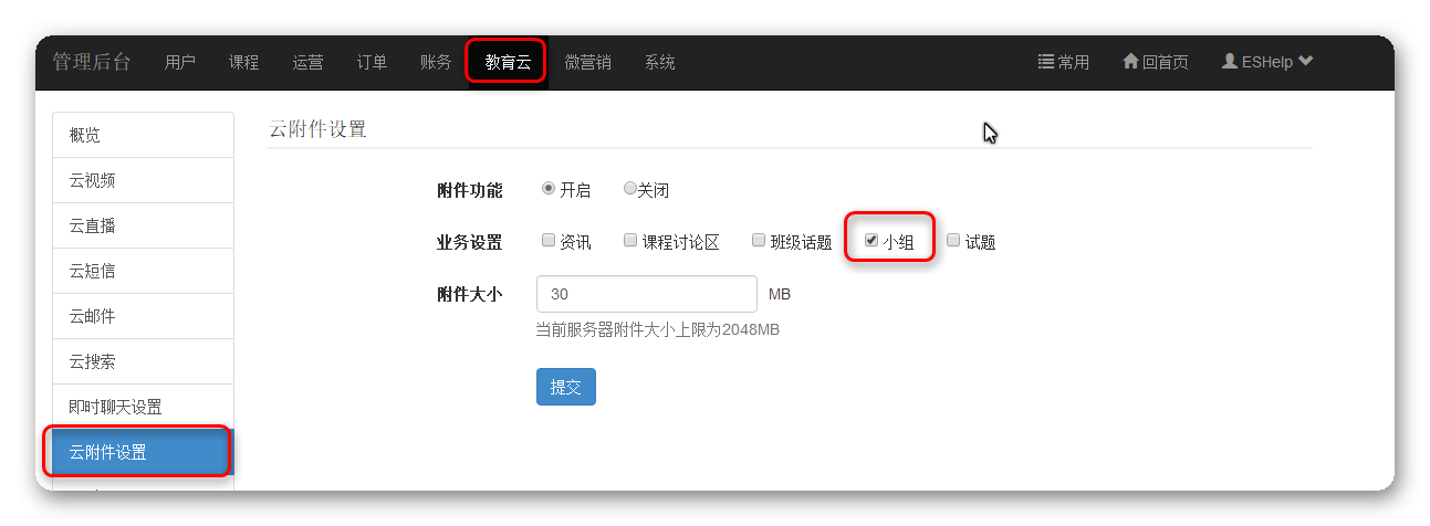 可以,系统升级到v7.1.0,小组话题可以添加附件; 前提根据路径:【教育云】-【云附件设置】-【小组话题】勾选小组话题