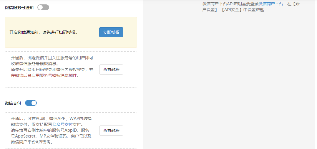 - 将密匙填写到网校后台【系统】-【微信授权信息】-【微信支付】的商户平台Key。