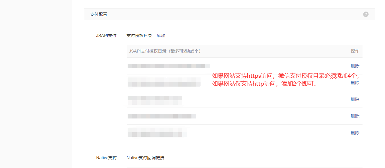 支付授权目录格式:域名/pay/center/和域名/h5/index.html#/;如果使用了https,授权目录必须填写4个。