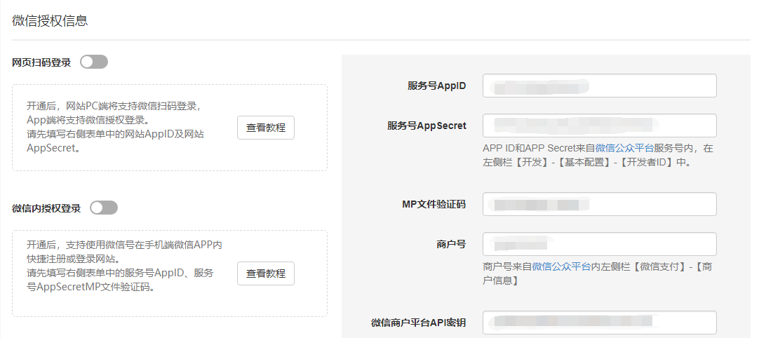 路径:网站【管理后台】-【系统】-【通用管理】-【微信授权信息】-【微信支付】;