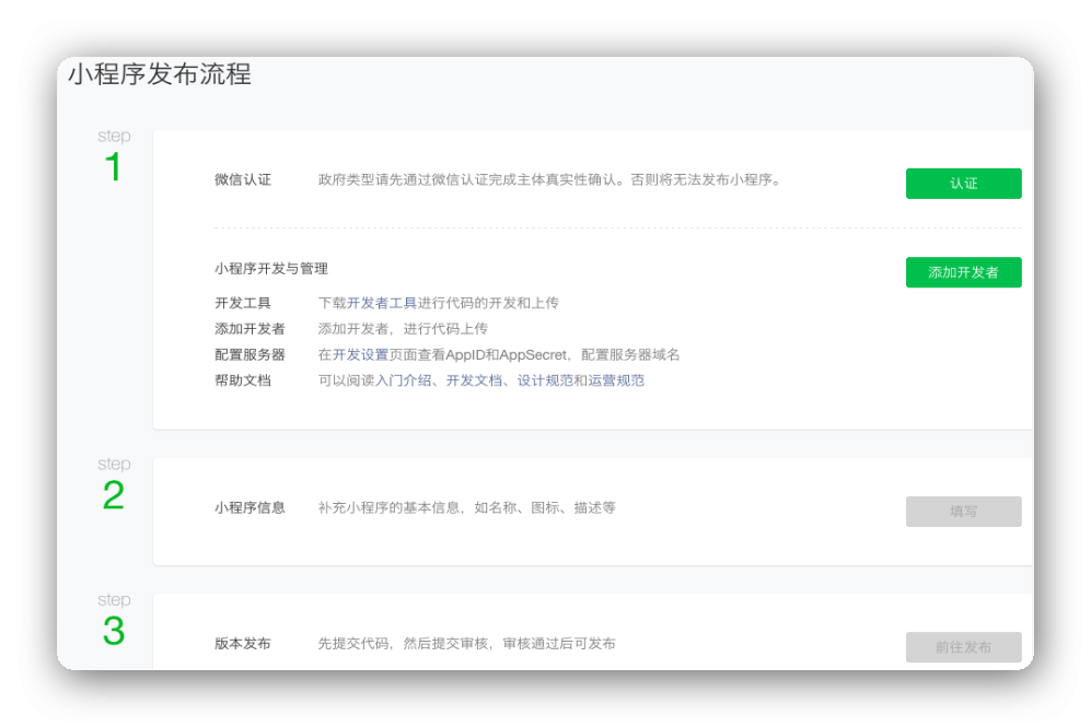 选择通过微信认证验证主体身份的用户,需先完成微信认证后,才可以补充小程序名称信息,上传小程序头像,填写小程序介绍并选择服务范围。