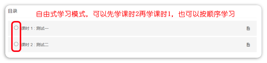 1、自由式学习:默认计划的学习模式为自由式学习,即学习过程由学员自由安排,学员可以跳跃性进行学习;