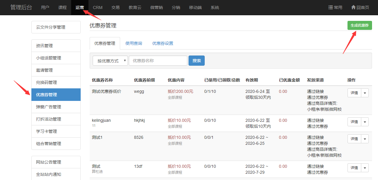 路径:【管理后台】-【运营】-【优惠券管理】-创建优惠券