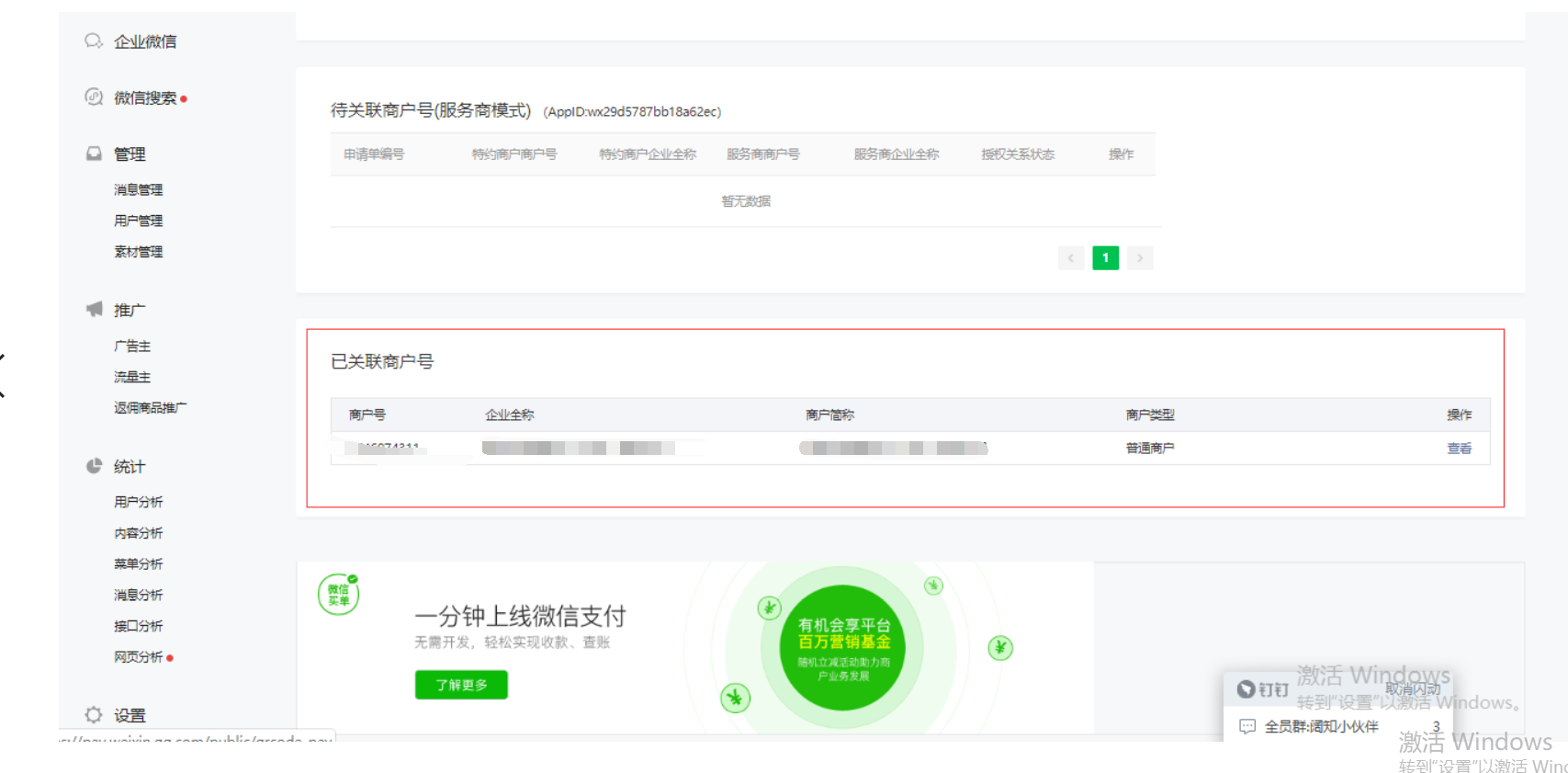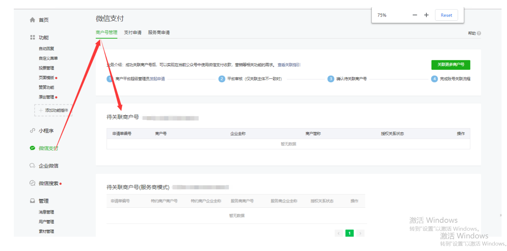 必须要关联到商户号才可以