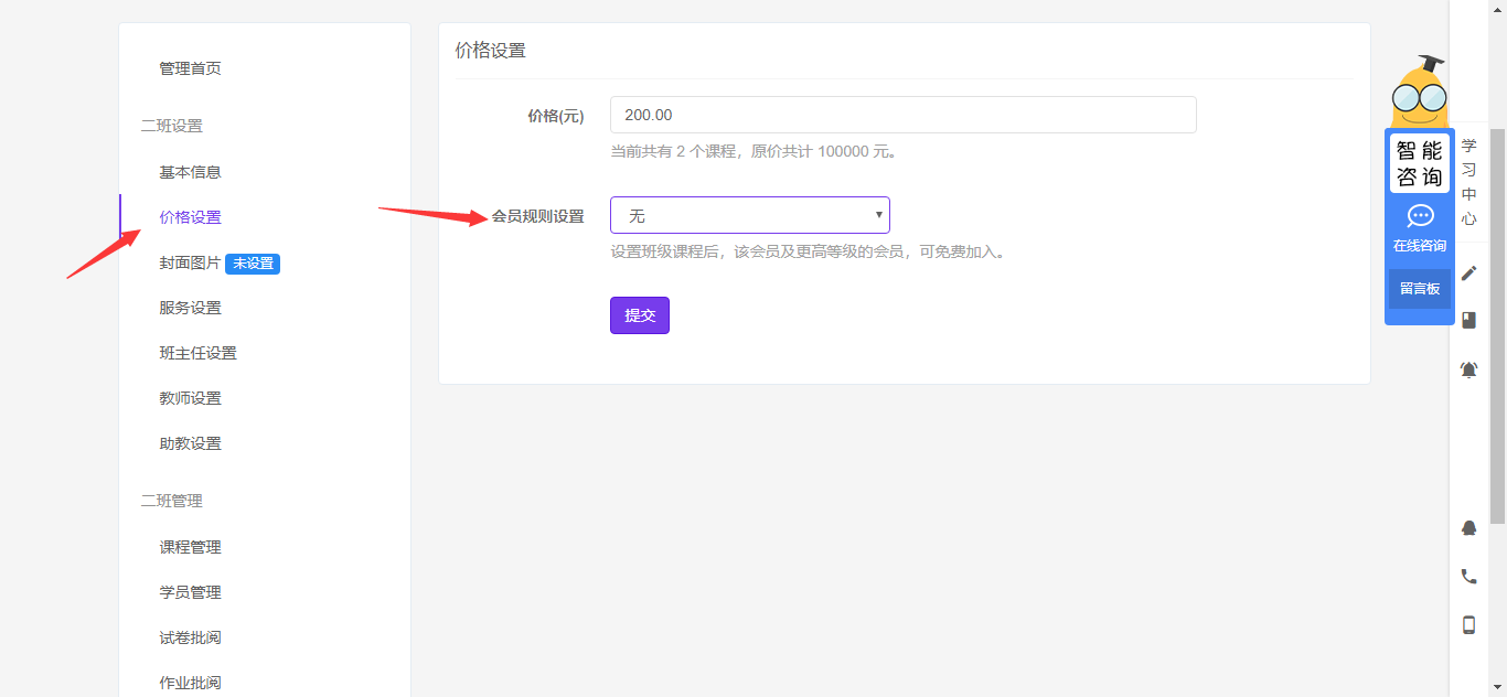 可以,与会员课程类似,路径:班级管理页【价格设置】-【会员规则设置】,将班级设置为某个等级的会员可免费加入,高于该等级的其他会员也可以免费学。