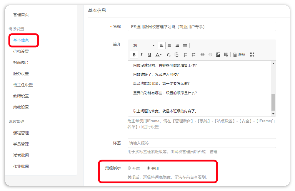 关闭展示后,未加入班级的学员打开班级地址就会提示提示无权访问。