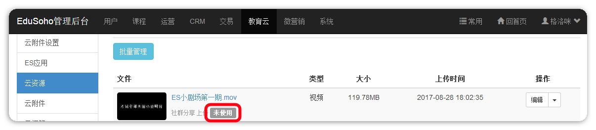 有未使用的标签表示这个文件没有被课时或任务引用过,是可以删除的。