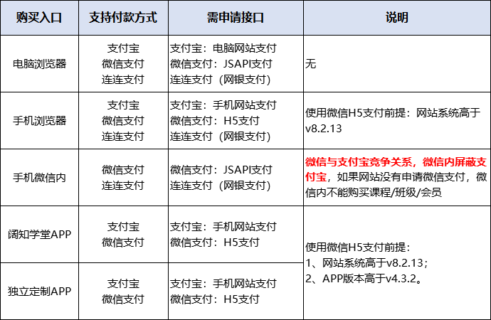 前言:微信与支付宝竞争关系,微信内屏蔽支付宝,如果网站没有配置微信支付,那在微信内用户无法购买课程/班级/会员。