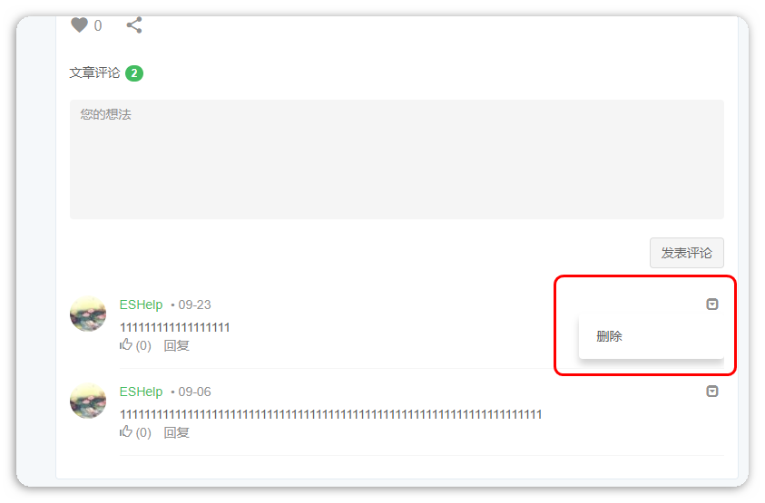 打开评论所在的资讯,页面最下方的评论区,可以直接选择删除某条评论。