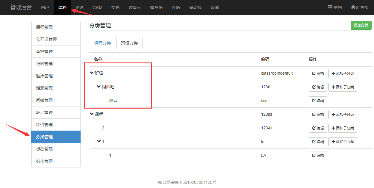 班级支持三级分类。