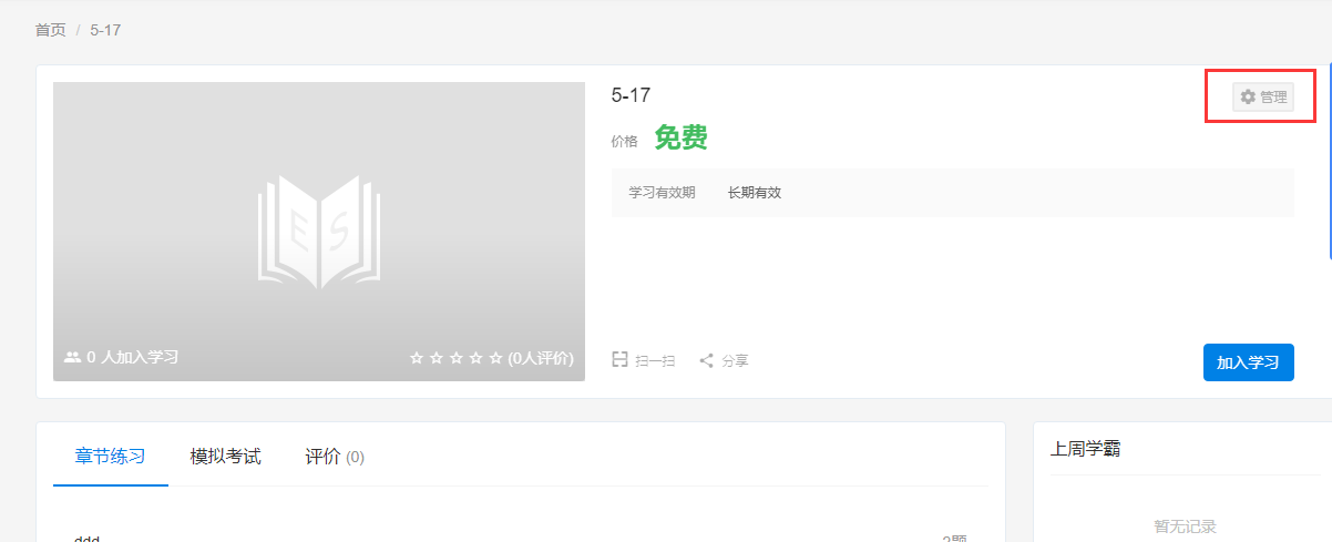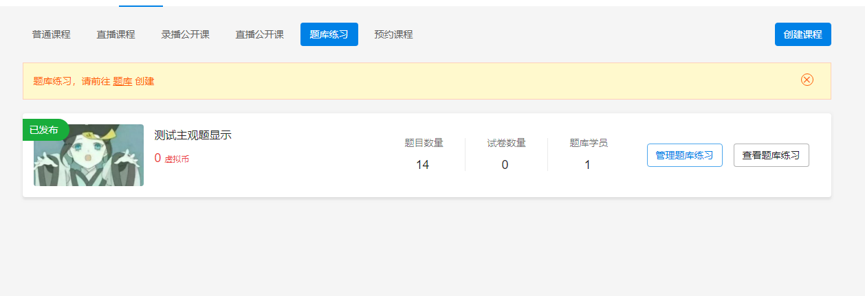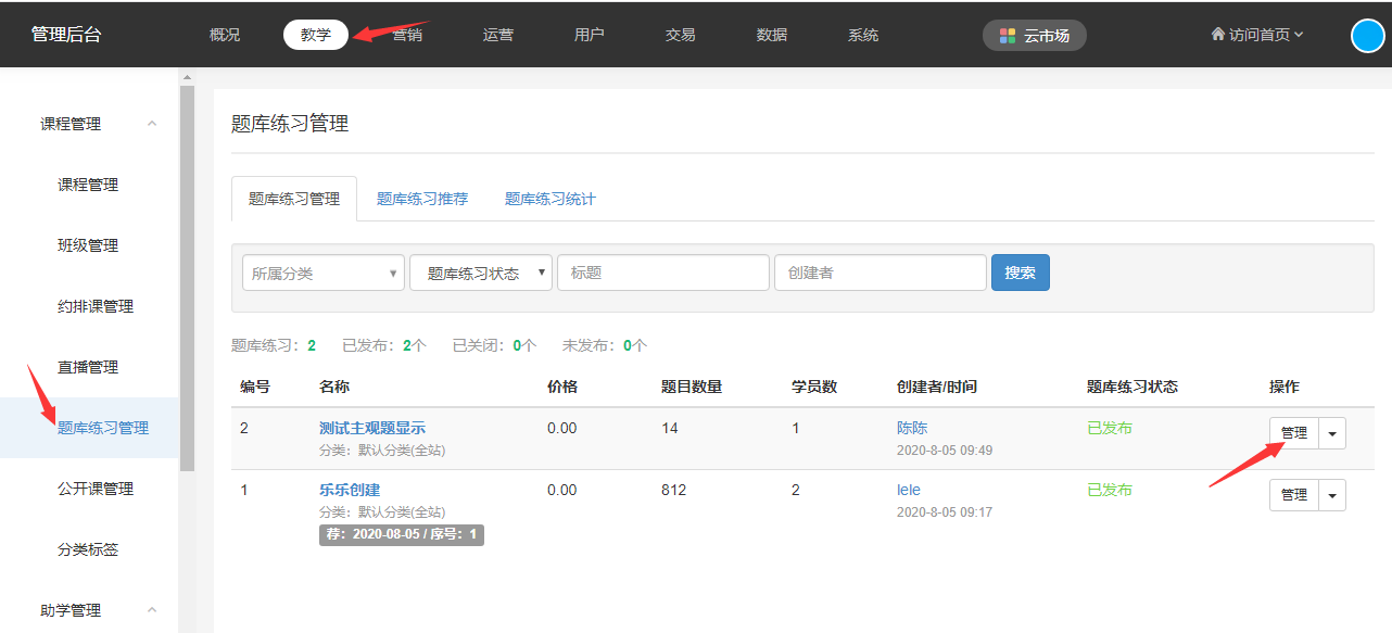 2.【我的教学】-【在教课程】-【题库练习】-【管理题库练习】