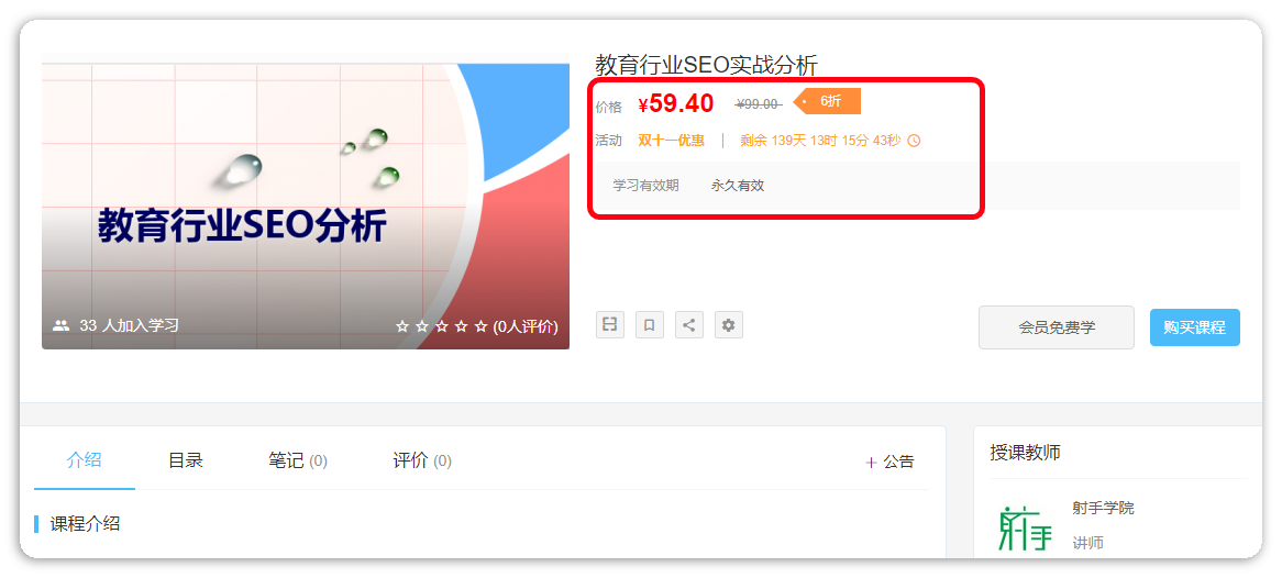 目前课程原价与优惠价只能通过打折活动插件来实现。