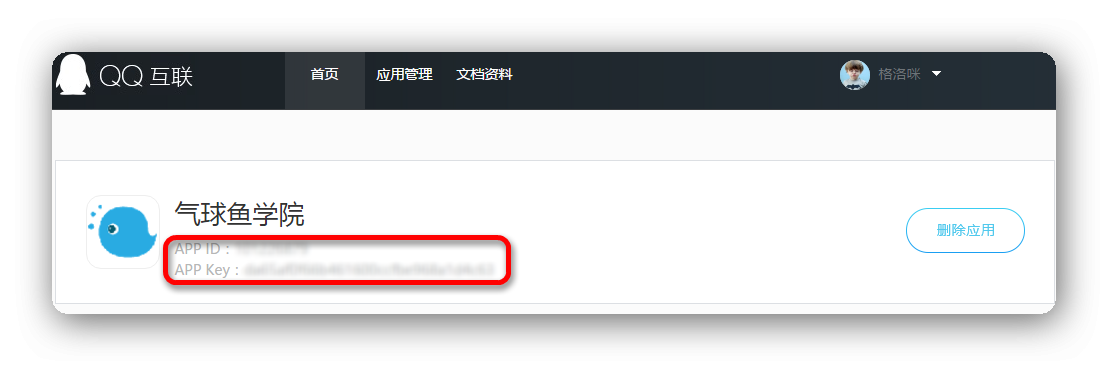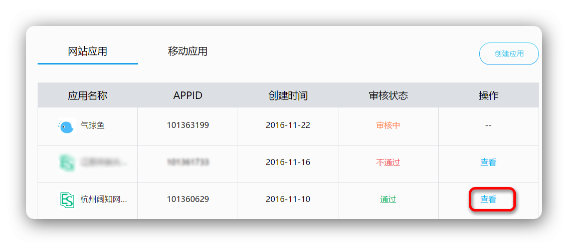 QQ登录网站应用审核通过后,【应用管理】中点击【查看】,在应用名称下方有App ID和App Key,把这两个信息复制到网校【管理后台】-【系统】-【用户设置】-【登录】-【QQ登录接口】中。