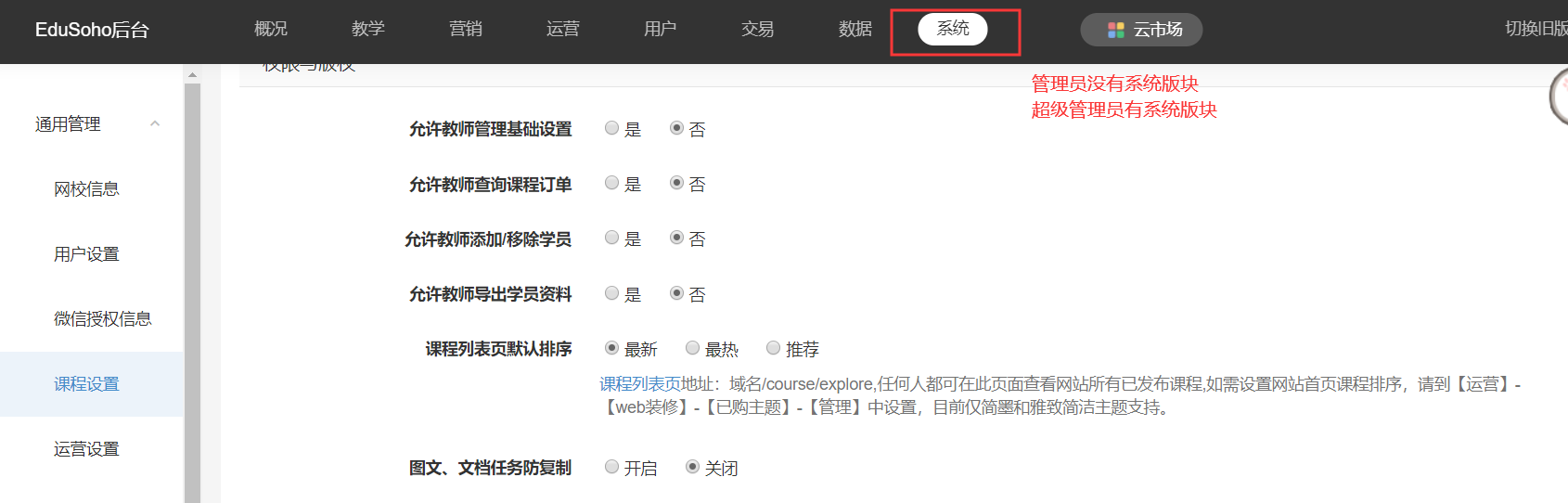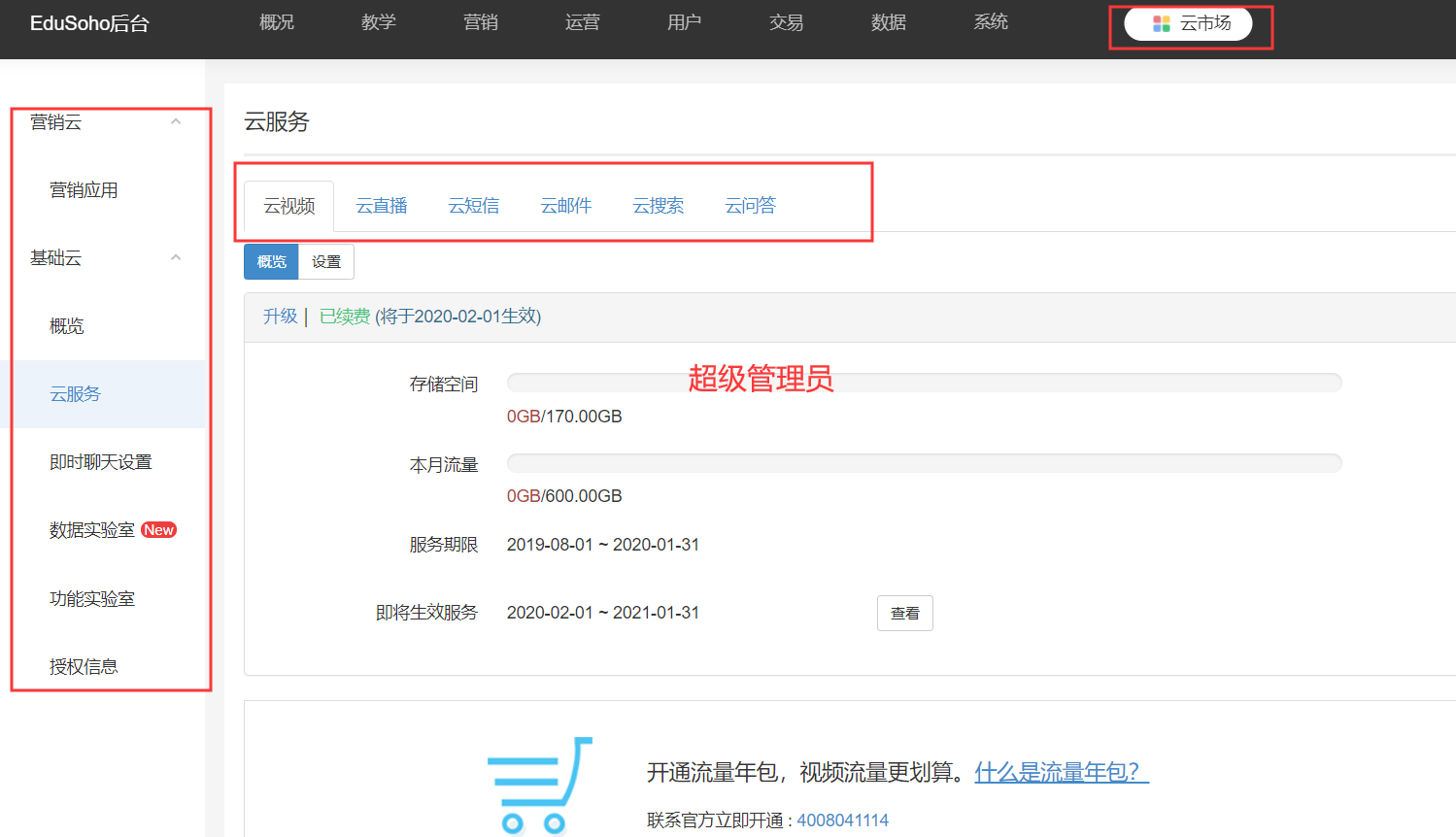 2、教育云--管理员没有账户概览、【云视频】、授权信息等查看权限;