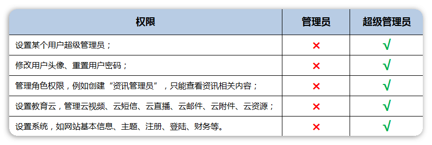 管理员与超级管理员区别概览: