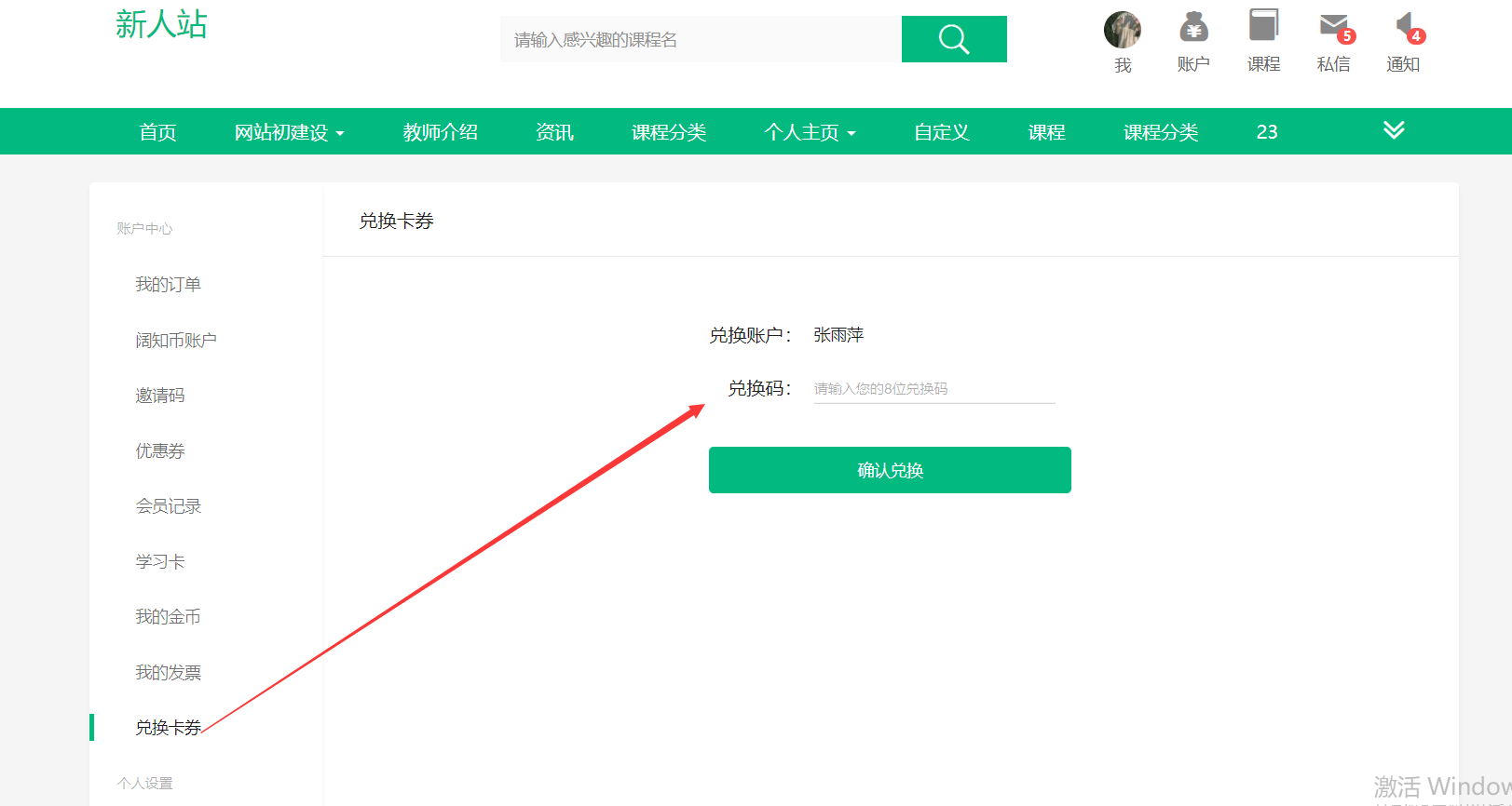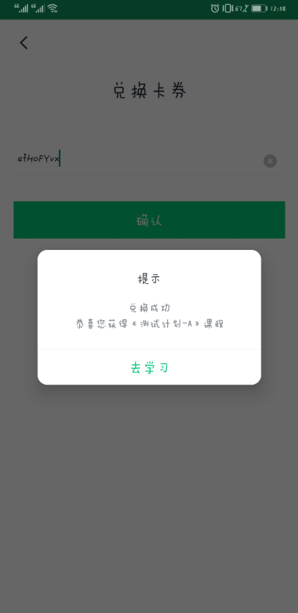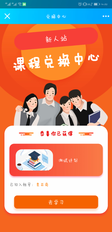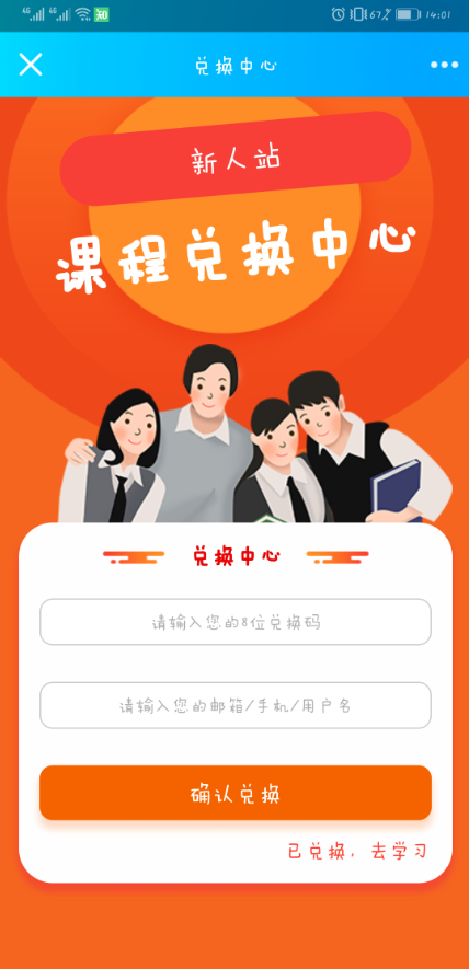 b) 用户打开网校从后台导出并下发的兑换链接进入兑换页面兑换。