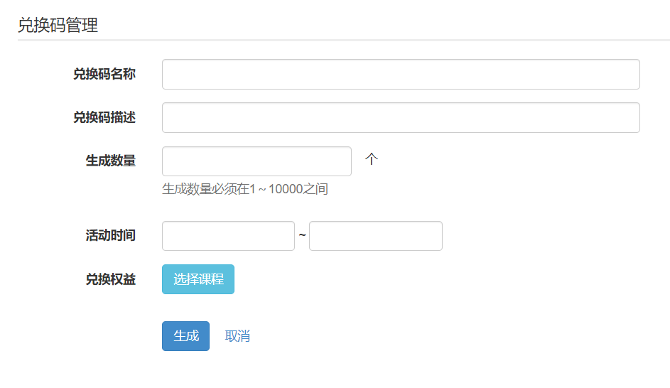 b) 点击【生成兑换码】,进入兑换码编辑页面,自行生成兑换码;