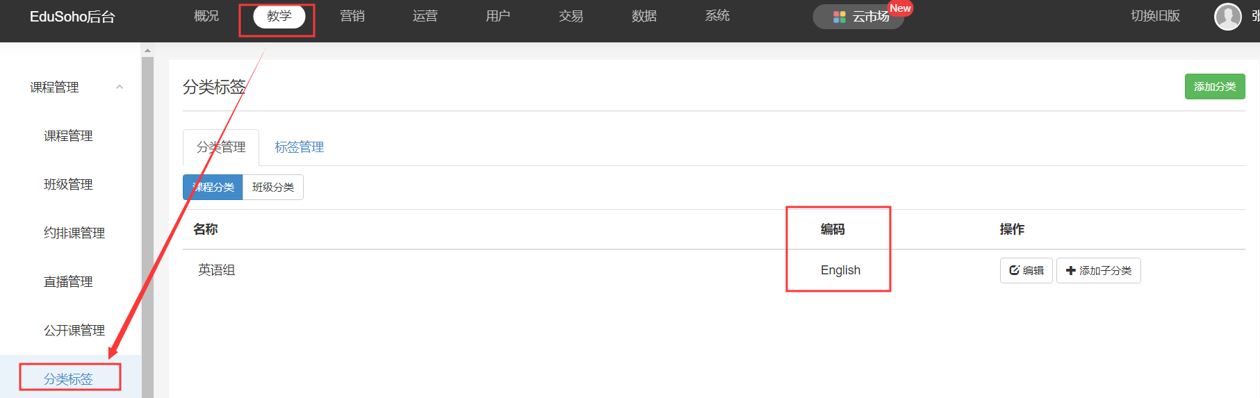 2、编码是课程分类地址的重要构成部分,课程分类地址 = 网校域名/course/explore/编码;