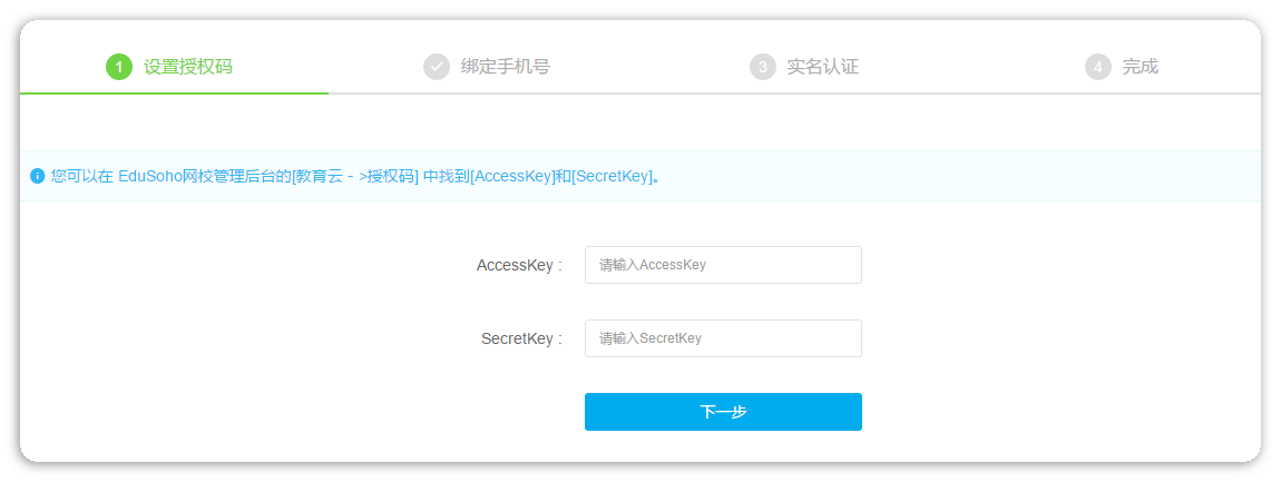 EduSoho开放云平台将于1~2个工作日内审核认证信息,认证通过,会有短信通知。