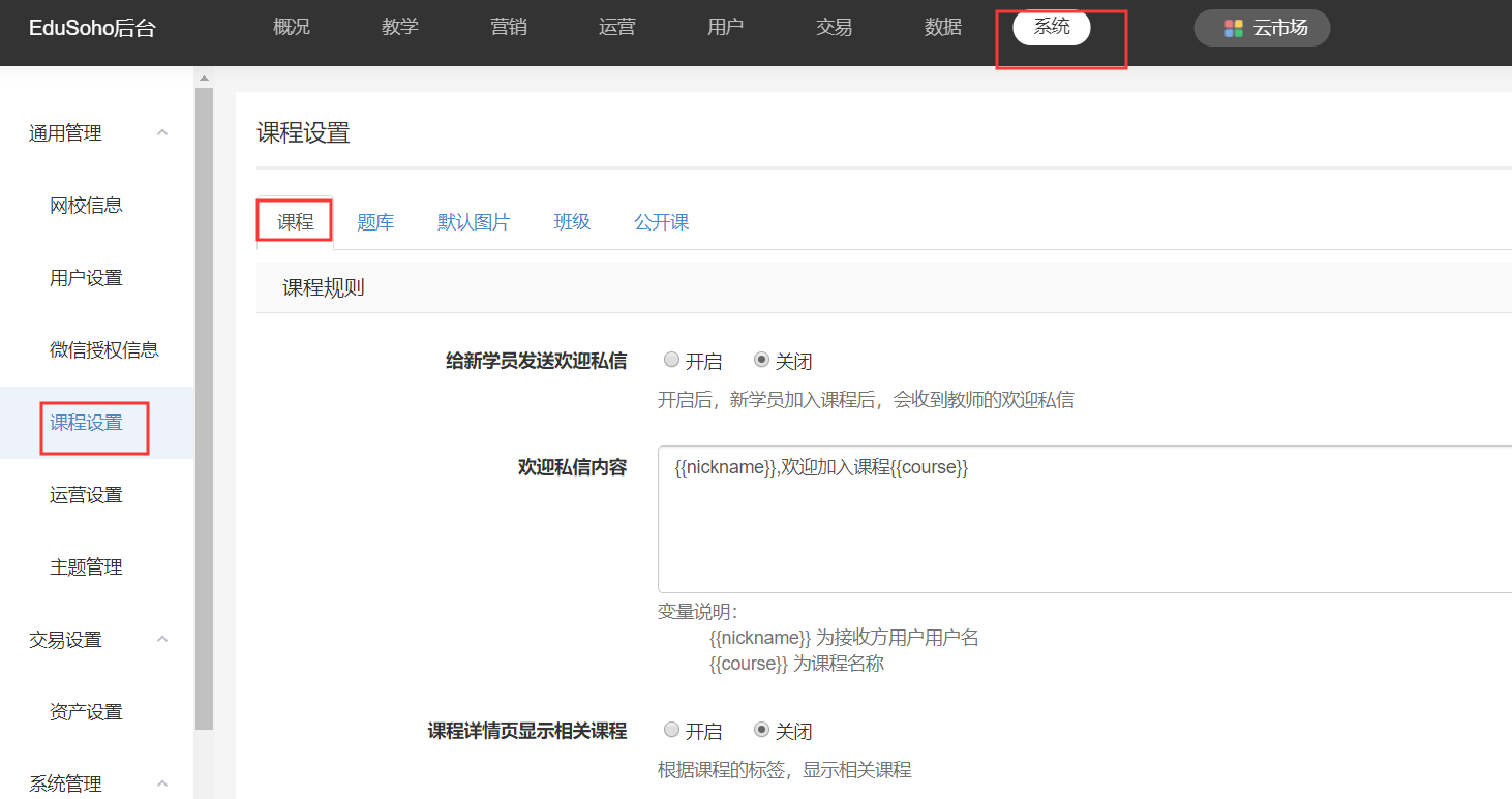 如果要调整这个页面的排序,可在【后台管理】-【系统】-【课程设置】-【课程】中设置,如下图: