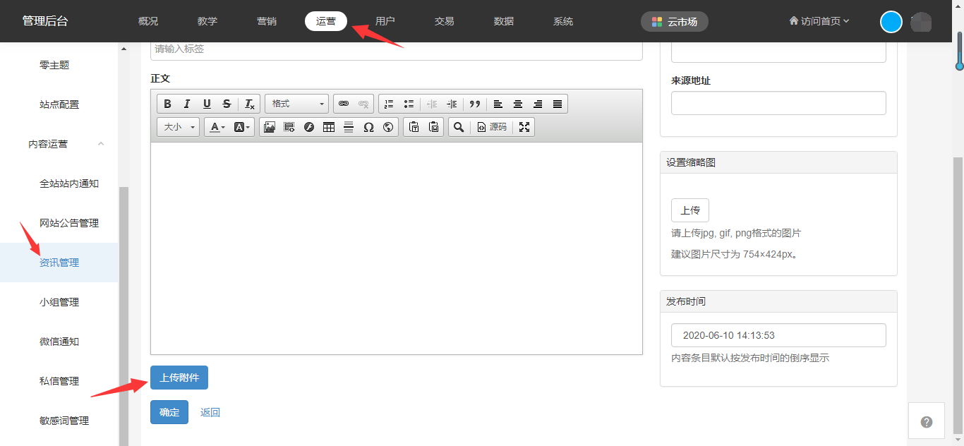第二步:添加新资讯或者编辑已有资讯,上传附件;