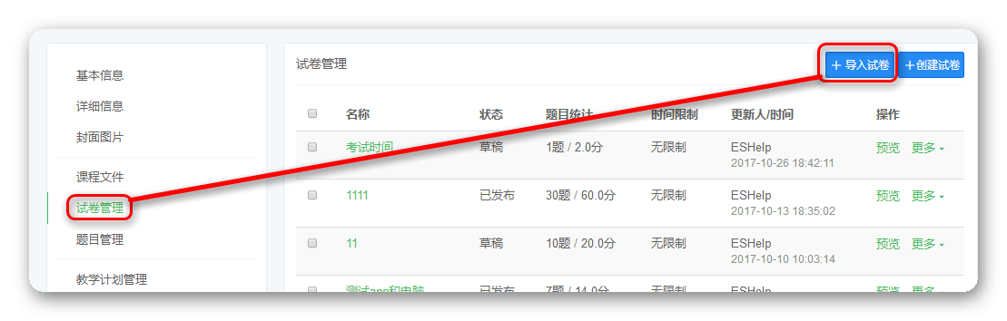 题目导入导出是商业版插件题库增强版的功能,商业版用户可以在【管理后台】-【云市场】-【营销应用】中安装,安装后可以在【课程管理页】中看到【题目导入导出】入口,开源版用户暂时没有这个功能。
