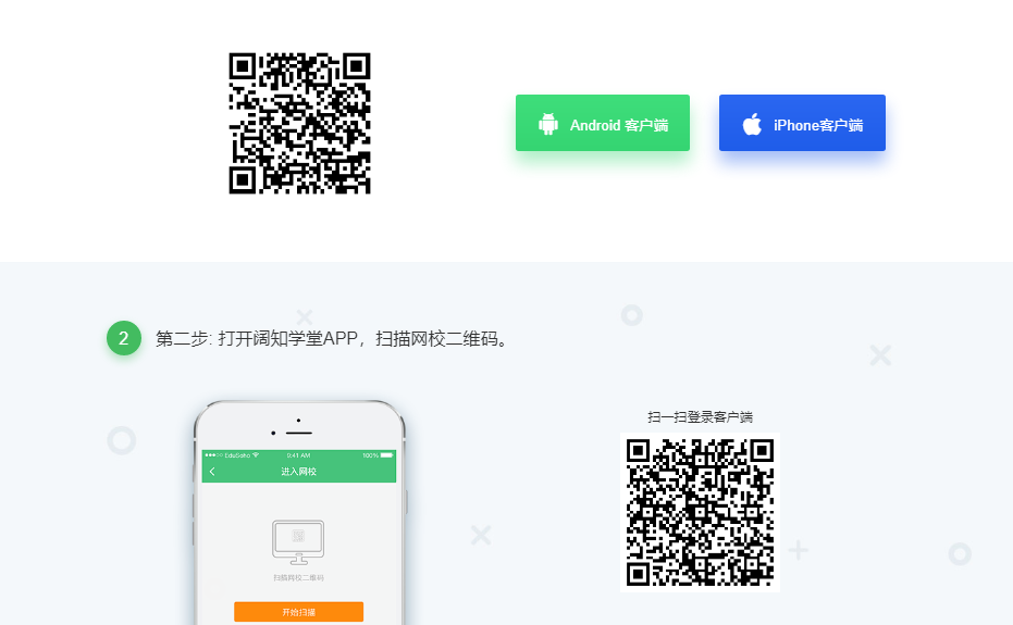 (1)APP安装后首次登录需要先搜索网校,以气球鱼为例,可在输入框搜索:气球鱼学院/www.qiqiuyu.com,或者扫描APP下载页中第二步的二维码。